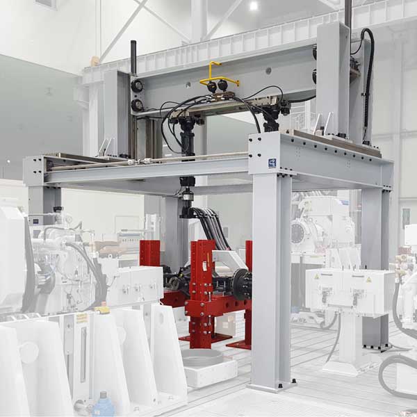▪ A test system that evaluates axle durability under combined loading conditions by simultaneously applying rotational loads via a dynamo and force/displacement loads via actuators.▪ Video
